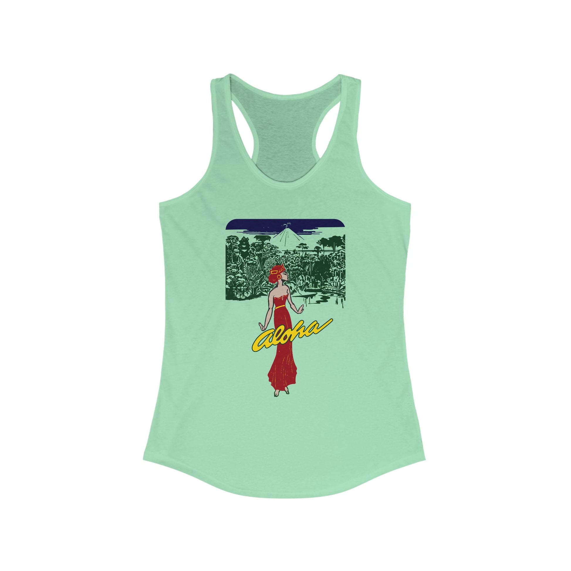 We repurposed, redesigned and recolored a very old image for our beautiful Aloha tank top.