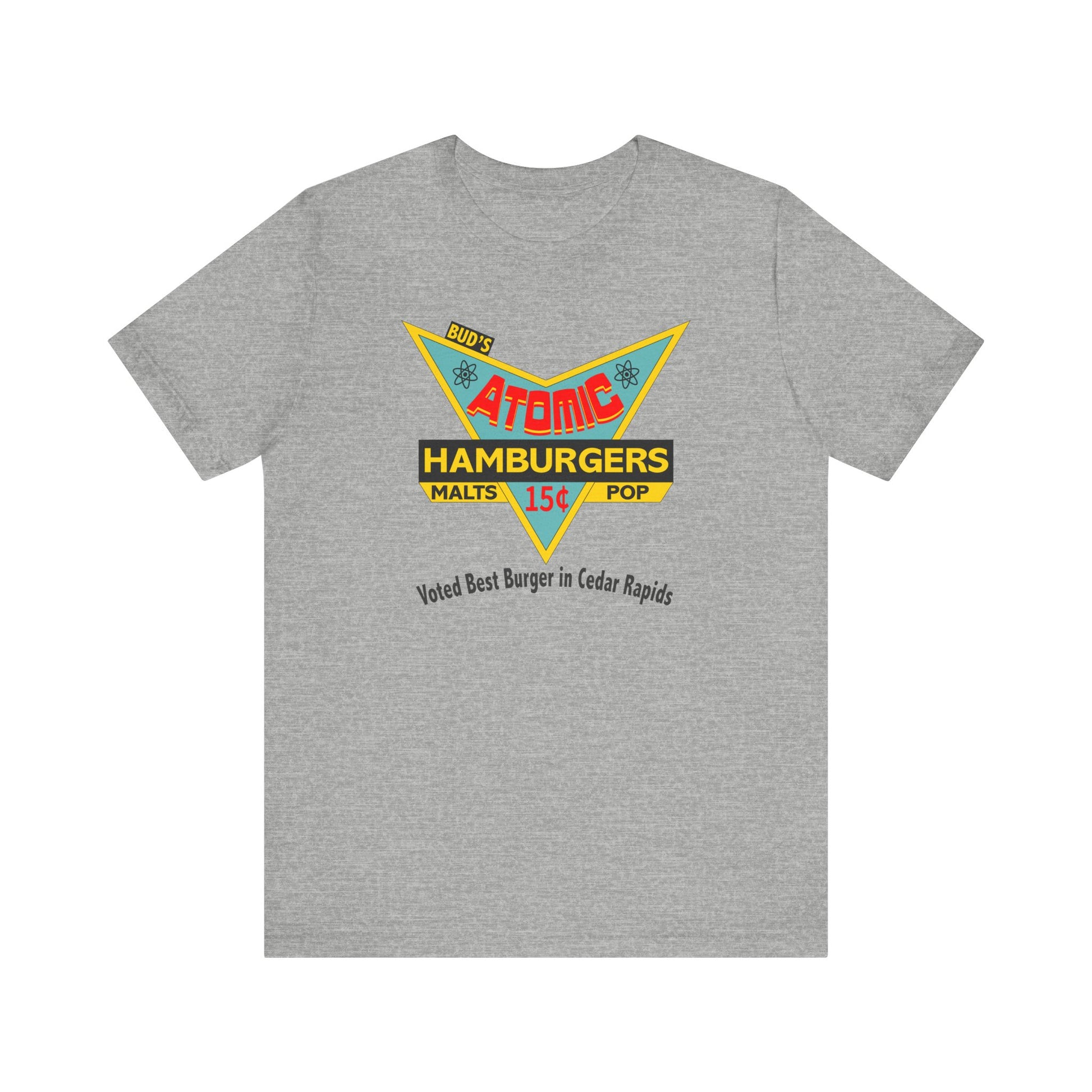 We created a very cool mid-century space age design for an imaginary burger joint, Bud's Atomic Hamburgers. Prefer it to be located somewhere other than Grand Rapids? Let us know and we'll change the city for you. Printed on our super soft and amazingly comfortable combed and ring spun cotton tees.
