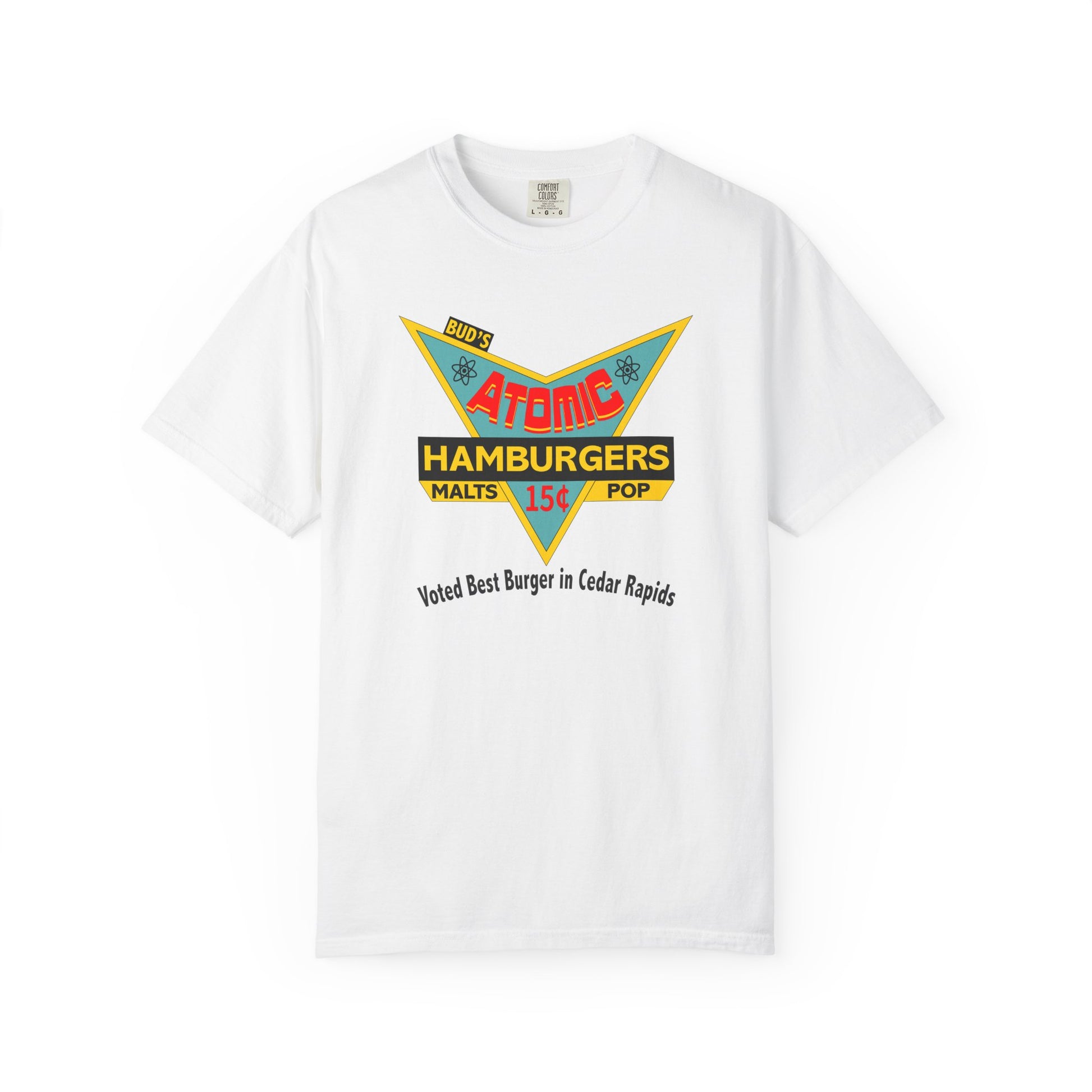 We created a very cool mid-century space age design for an imaginary burger joint, Bud's Atomic Hamburgers. Prefer it to be located somewhere other than Grand Rapids? Let us know and we'll change the city for you. Printed on our super soft and amazingly comfortable ring spun cotton tees.