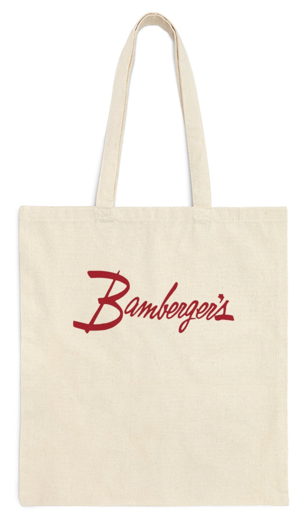 A tote to celebrate the great Bamberger's. Located primarily in New Jersey, Bamberger's was one of America's great department store chains. The flagship store, covering a full city block in Newark, was something special. Opened in 1912, it was the 6th largest department store in the nation.
