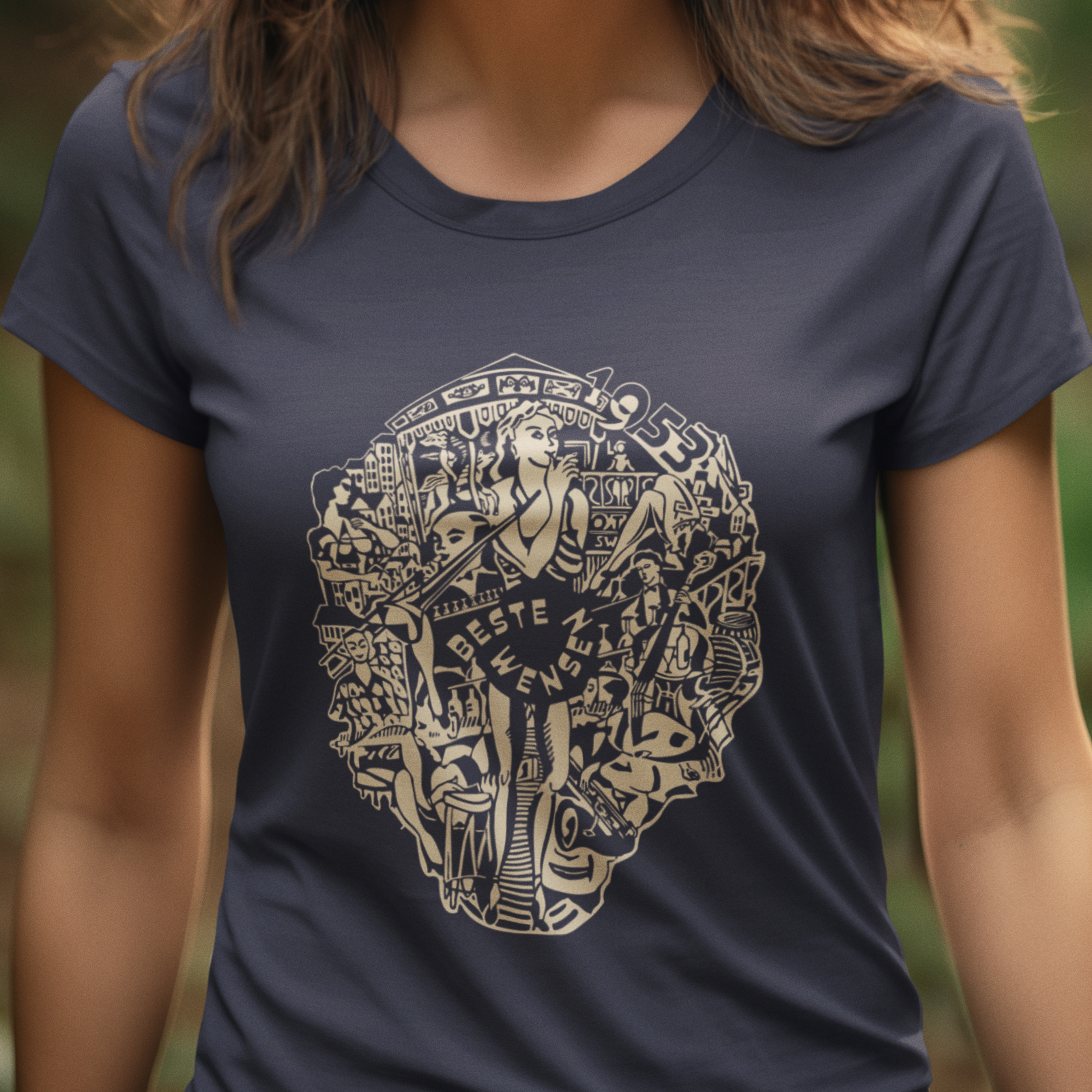 We redesigned a mid-century poster for this super cool t-shirt image. An symbol of post-war resurrection with "best wishes" in Dutch for the incoming 1953 celebration in the center. Printed on our amazingly soft and incredibly comfortable combed and ring spun cotton tees.