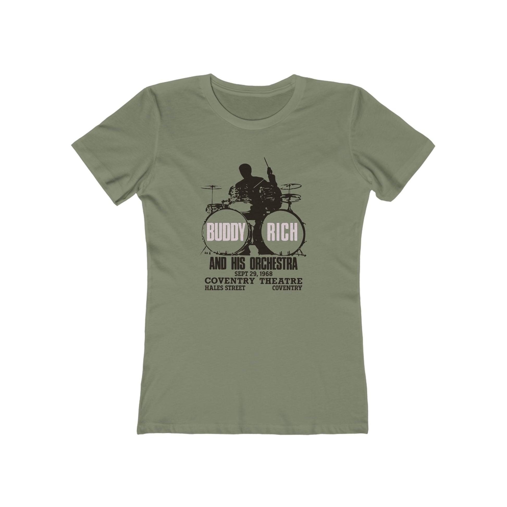 Our Buddy Rich t-shirt commemorates a 1968 UK concert by the great jazz drummer. Printed on our super soft and fantastically comfortable combed and ring spun cotton tees.