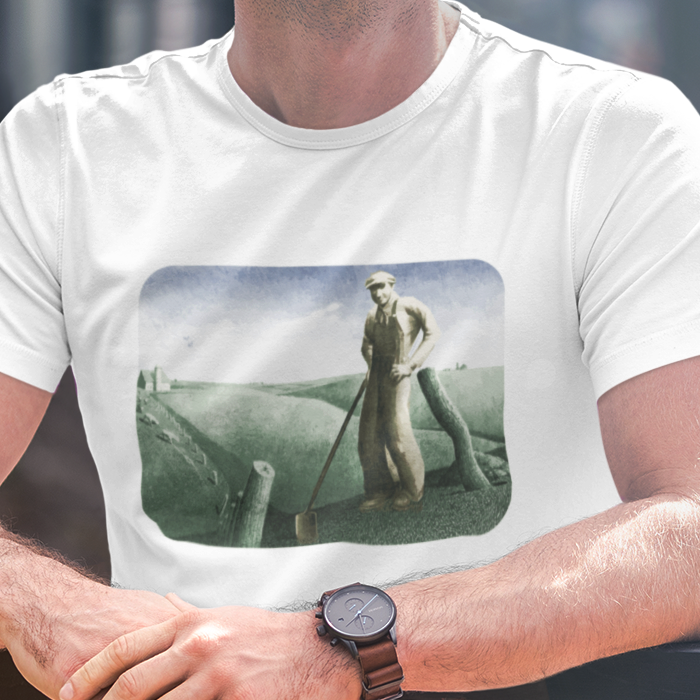 We recolored and repurposed a century old illustration for our beautiful farmer design. Printed on our super soft and incredibly comfortable combed and ring spun cotton tees.
