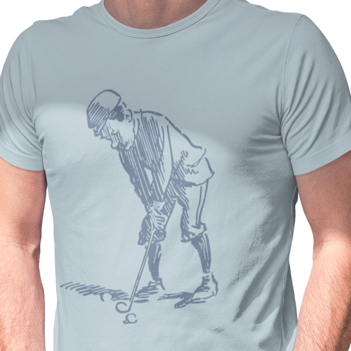 We repurposed a classic old image of a golfer about to chip. Printed on our super soft and extremely comfortable combed and ring spun cotton tees.