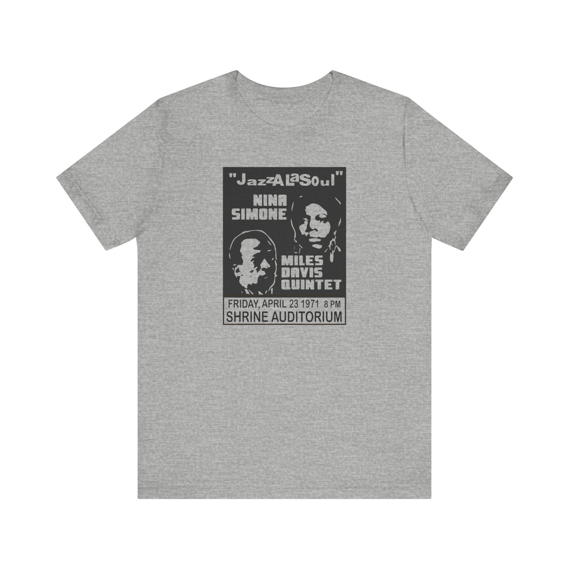 Nina Simone & Miles Davis shared the bill at a 1973 concert at the Shrine Auditorium in Los Angeles. We created this beautiful tee that commemorates the occasion. Printed on our super soft and totally comfortable combed and ring spun cotton tees.