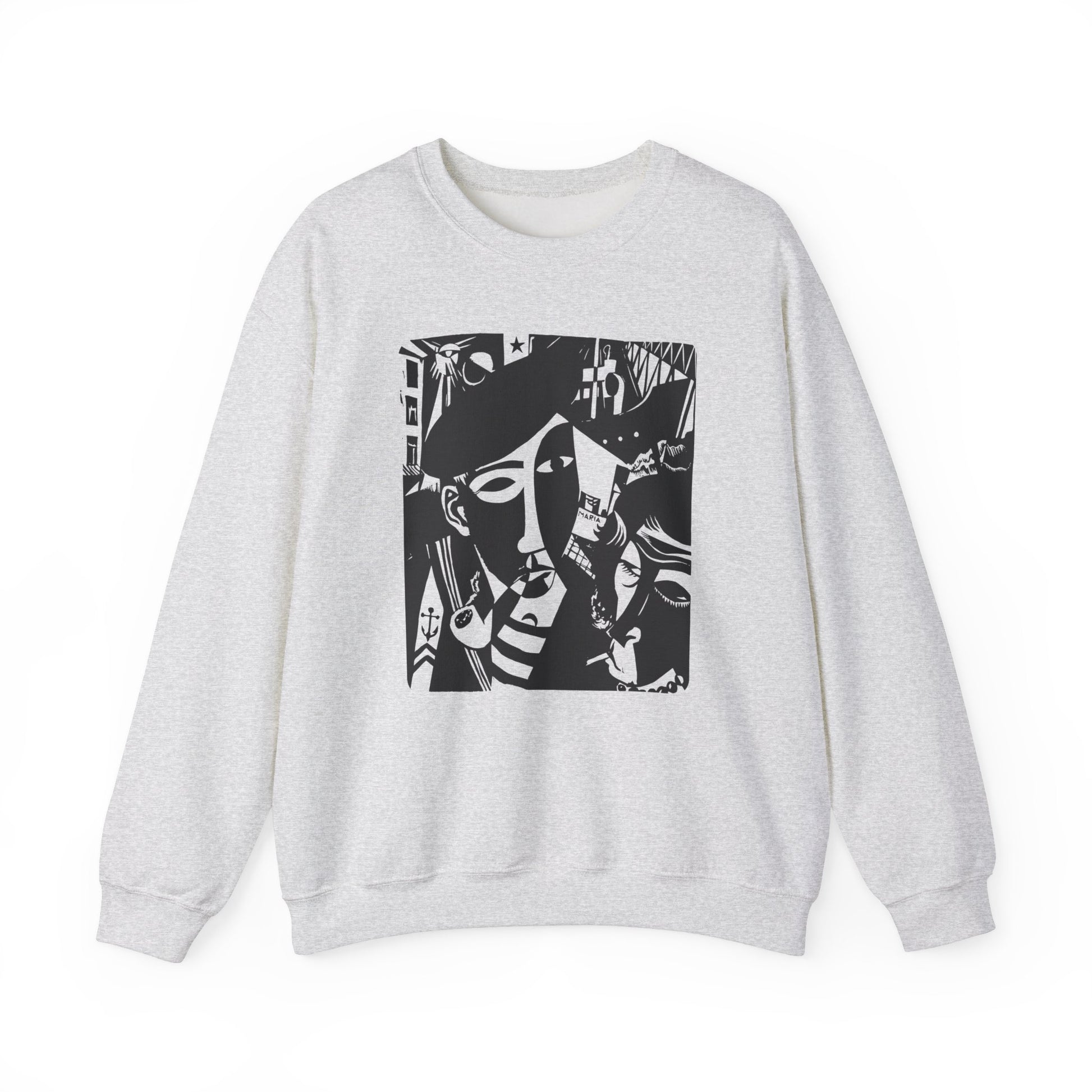 We adapted Passagieren, a 1935 work of a man and woman aboard a ship, by Dutch artist Tinus Van Doorn for a beautiful sweatshirt in either light and dark colors.