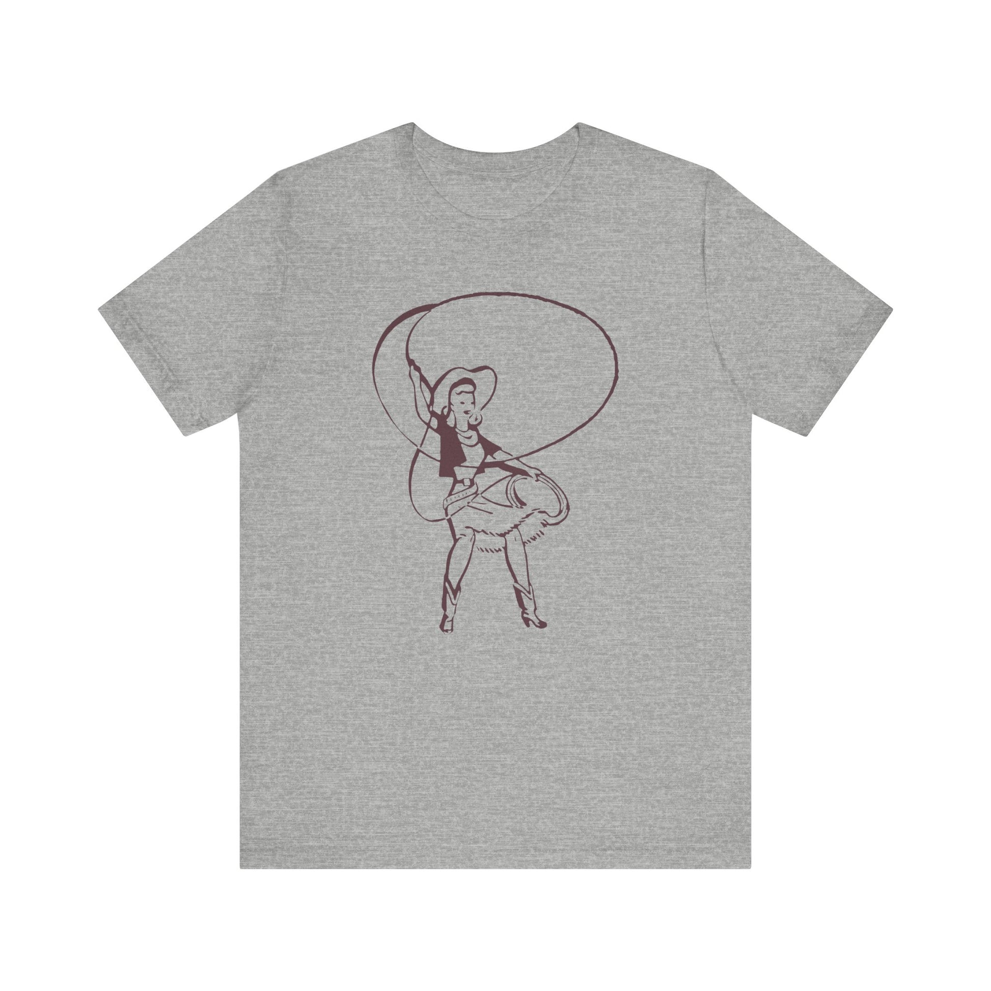 We love the simple design of our female roper. Printed on our super soft and incredibly comfortable combed and ring spun cotton tees.