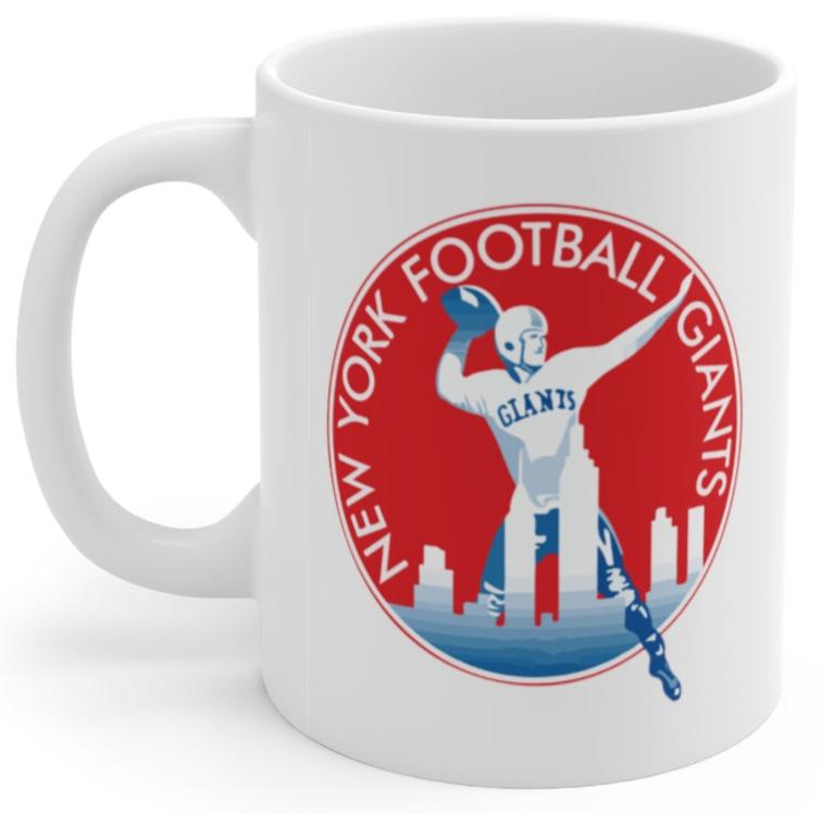 The old New York Football Giants logo from when there was a baseball Giants, too. A great image of the NYC skyline dwarfed by the quarterback.