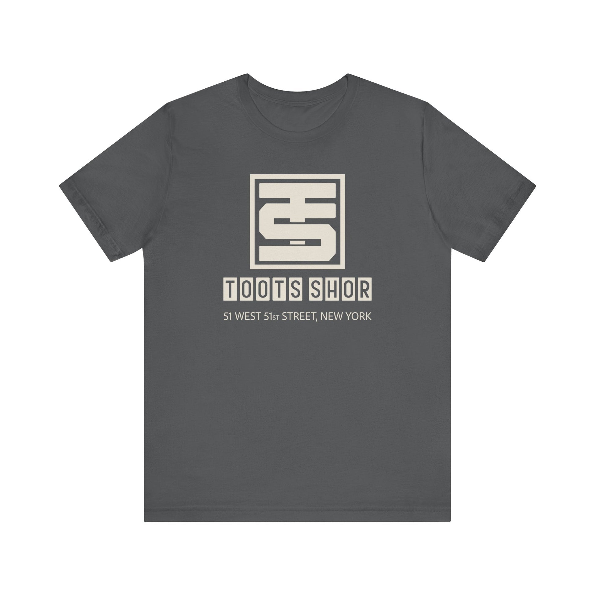 Toots Shor's Restaurant was the quintessential New York City saloon frequented by celebrities like Jackie Gleason, Joe DiMaggio, Ernest Hemingway and Orson Welles. We recreated the classic logo for light and dark color shirts. Printed on our super soft and amazingly comfortable combed and ring spun cotton tees.