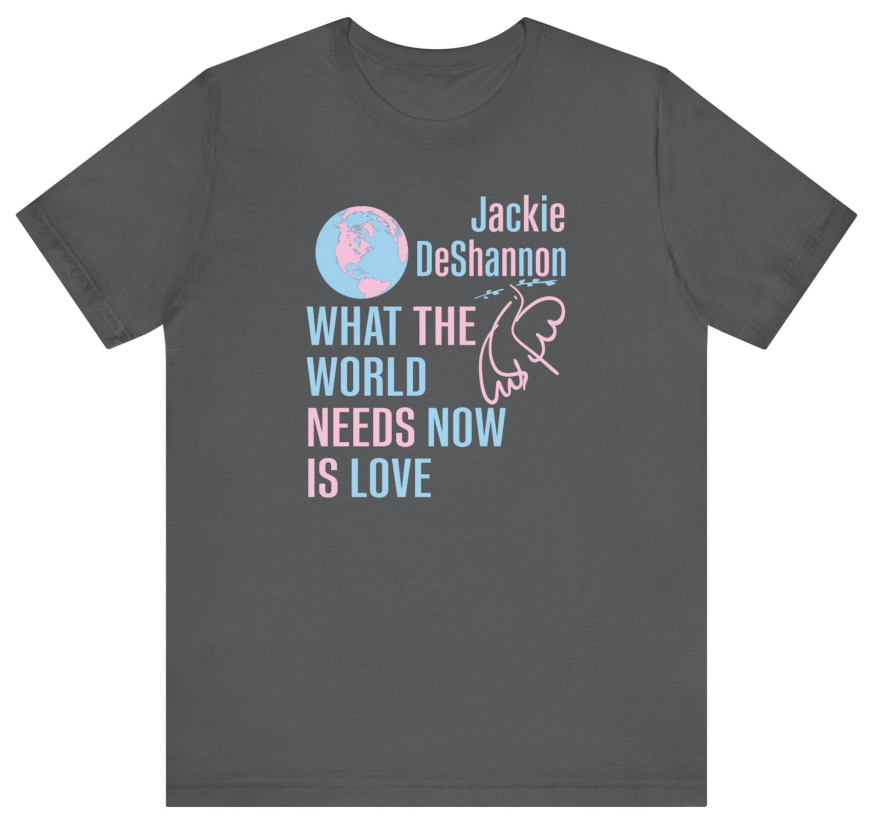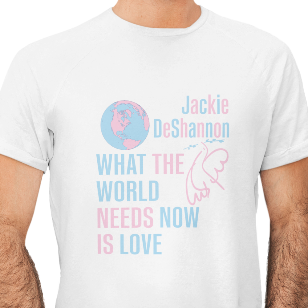 We created a 60's style design for our What the World Needs Now is Love t-shirt, the mega-hit by the great Jackie DeShannon, composed by Burt Bacharach and Hal David. Printed on our super soft and incredibly comfortable combed and ring spun cotton tees.