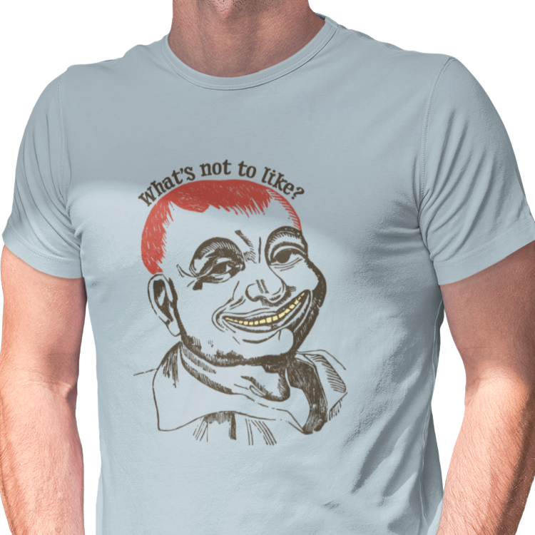 Yeah, we admit the image is creepy, but funny creepy. Bring a smile (a real one, not a creepy one) to yourself and your friends while you look and feel great in our super soft and incredibly comfortable combed and ring spun cotton tee.