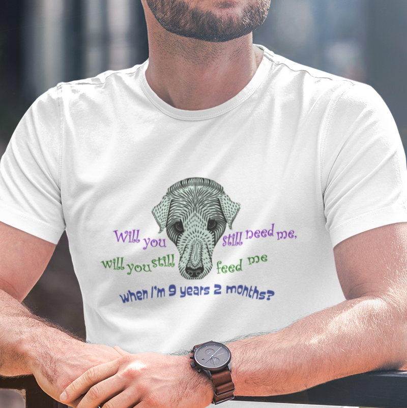 Our When I'm 64 tee combines our favorite century-old dog image with the well-known Beatles tune, but adjusted for dog years. (There's no need to check the math- it's right). Printed on our super soft and comfortable combed and ring spun cotton tees.