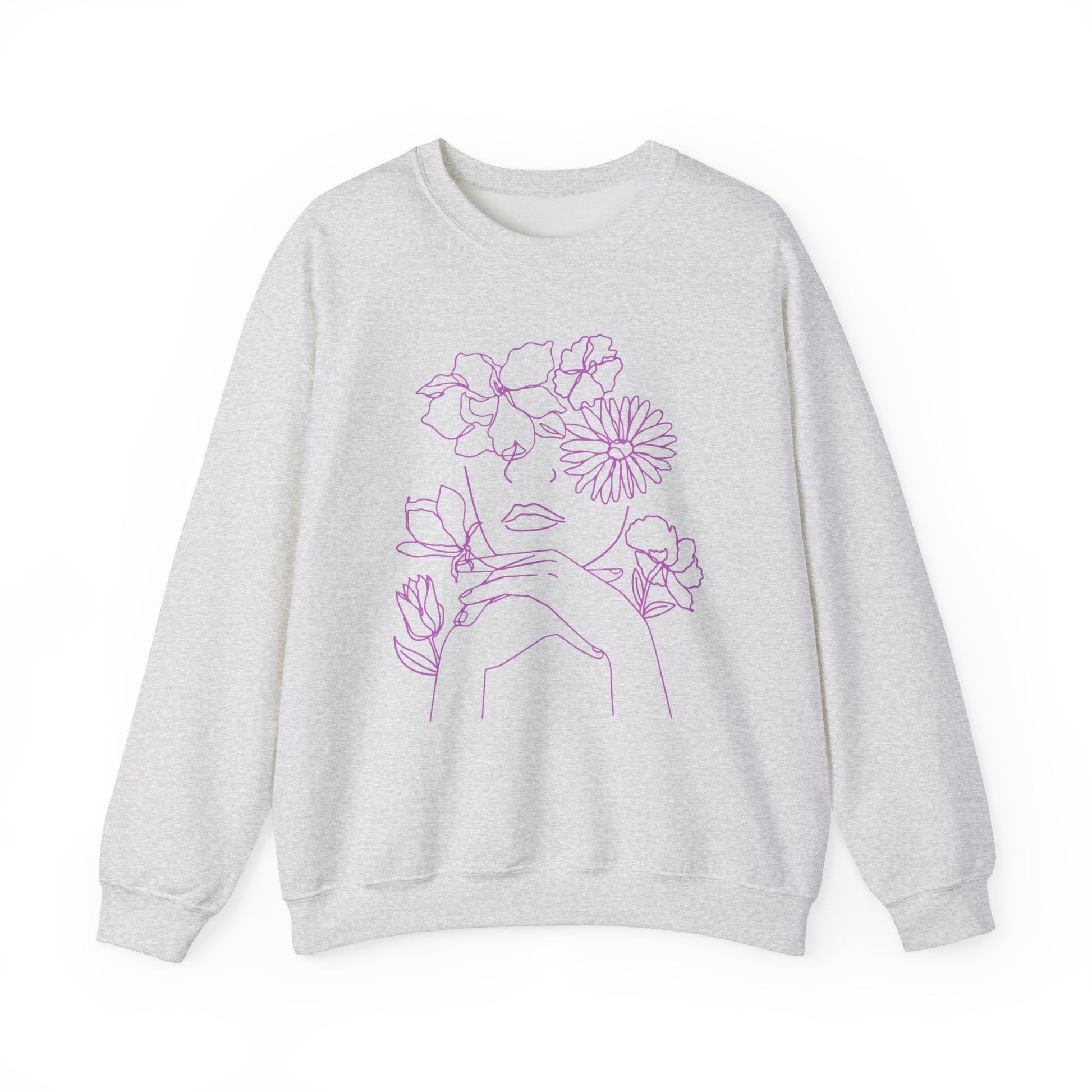 Our Woman Among the Flowers sweatshirt has a simple yet beautiful line drawing as its design.